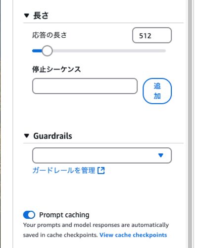 小ネタ。 Bedrockには一部の基盤モデルにおいてプロンプトキャッシュという機能があります。2025年7月5日時点では、ClaudeとAmazon Novaのいくつかが対象となっています。 docs.aws.amazon.com 何でもかんでもキャッシュされるわけではなく、プロンプトのト…